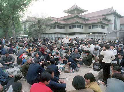 从4月24日晚开始,怀着对中央政府的信任和期待,法轮功学员纷纷自发地走向国务院信访办。由于绝大部分学员从来没有和国务院信访部门打过交道,而且有一部分是外地赶来的,所以很多人都在问路,有的知道具体名字的问国务院信访办在哪,有的听说在中南海附近,有的听说在府右街,就直接询问去中南海或者府右街怎么走。第二天上午,不知不觉已有至少万名法轮功学员赶到了府右街一带。