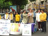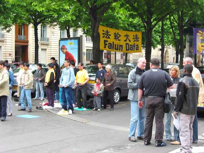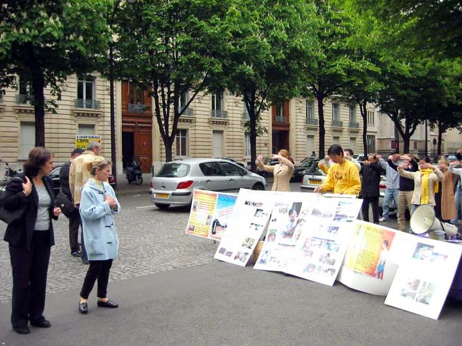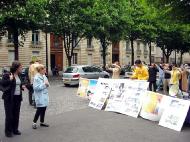 【明慧网2004年4月25日】2004年4月23日下午,部分在巴黎的法轮功学员在中使馆前炼功、发正念、讲真象,要求立即停止在大陆对法轮功的