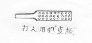 “皮板”是用橡胶皮宽带制作的,有个手柄,“皮板”上还有一排排又大又亮的铆钉(铁疙瘩)。(大意形状见下图)
