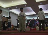 ![]() 大法弟子演唱大法歌曲“缘中缘”(后面活动滑墙被推开了) | ![]() 小弟子表演五套功法 |