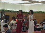 宴客当天由于我们只宴客20桌左右,餐厅以活动滑墙将我们与其他食用欧式自助餐的客人隔开,一直到大法弟子上台表演大法舞蹈“福”后奇迹发生了,当天表演后受到来宾报以热烈掌声,餐厅的经理觉得节目特别,主动提出将阻隔用的活动滑墙推开,希望我们大法弟子表演给全餐厅的客人观看,当天讲真象的对象由20桌演变到全餐厅,全场约400人左右,我们意识到了这是师尊的安排!节目表演完毕后原本略有微言的母亲也询问怎么没安排多一点节目,节目太少了!在散席时我们也发放着真象资料给全餐厅的客人!原本以为只是对着参加宴客的亲友讲真象却没想到整个餐厅的客人都听到了真象,使更多有缘的人更了解大法!