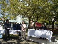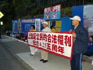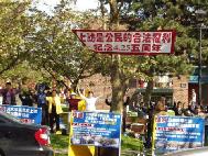 4.25纪念活动引起了许多人的关注,没有上台的学员在路边派发4.25专辑传单,解释人们提出的问题,使许多有缘人了解了真象。