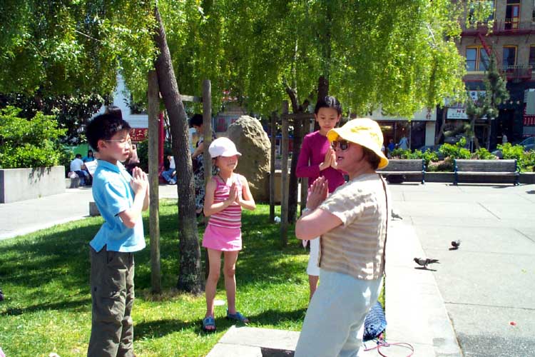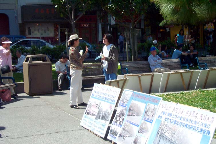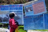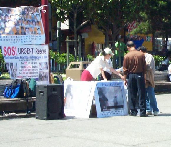 当天烈日当空,在座谈会进行中,有的民众主动索取资料,有的与学员交谈了解真象;还有三位小朋友学功。一位姓郭的路人在听完讲座,并了解到有近千名法轮功学员被迫害致死,还有很多受到酷刑时说,他们(江××一伙)使用这么残酷的手段,真的不对。