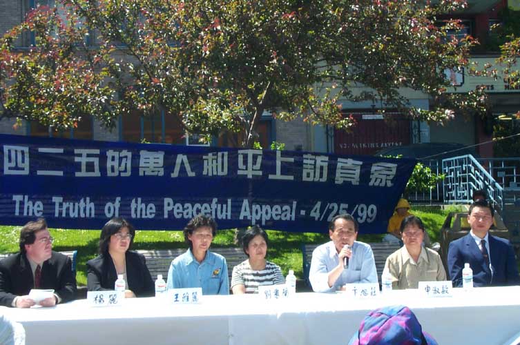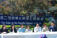 ![]() 425见证人卞旭庄发言 | ![]() 国会议员兰托斯的助理发言 | ![]() 讲座中,主动索取资料的路人 |