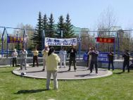 ![]() 法轮功学员集体炼功 | ![]() 过往行人在观看展板 | ![]() 法轮功学员集体炼功 |
