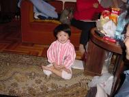 (法度):妈妈告诉我:我曾经有一个幸福的家,爷爷、爸爸、妈妈和我,他们都特别疼爱我,你看,爸爸把我举得多高啊(笑声)。