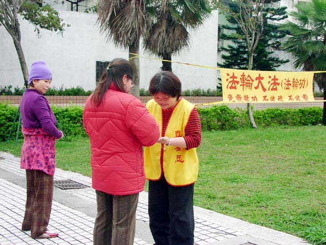 学炼法轮功1年半的家庭主妇林美满是个大.纪.元;时报的忠实读者,她在大.纪.元;时报看到法轮功学员的投稿文章而感动好奇,开始学炼法轮功。她提到之前的过敏性体质常会胃肠与鼻过敏,现在已改善许多,性情也较温和了,先生和小孩目睹此巨大变化都支持她修炼。