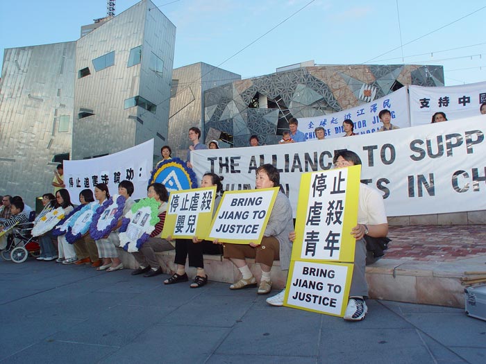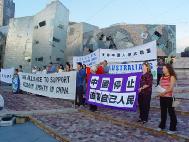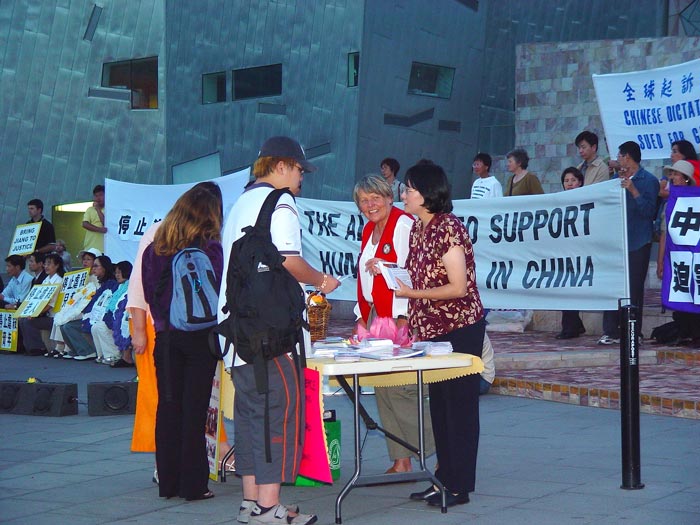 | 墨尔本市中心联邦广场集会现场 | 过往群众了解法轮功真象 | |