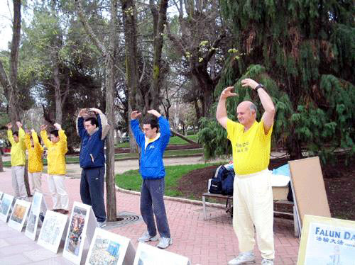 很多人读过传单或看过图片后主动与学员们攀谈并询问更多有关法轮功的信息。学员们一一耐心的解答,了解到法轮功的真象后,人们对正在中国发生的残酷非法迫害表示震惊与愤慨。许多人向法轮功学员们表示了他们的同情与支持;也有的人看了家人带回去的传单后特意赶来学功……