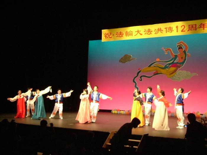 为准备此次晚会,日本法轮功学员克服工作忙,居住分散等困难, 认真排练,使得最后晚会圆满成功。看了精彩的歌舞等表演,有学员深有感触道,法轮大法弟子中真是人才济济啊,只要大家都协调配合好,就没有什么事做不好。一位报社记者说, “你们法轮功心真齐,唐朝服饰舞蹈太漂亮了!”