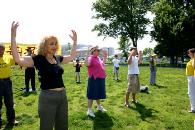在整个活动中随处可见的西方面孔已清晰的表明法轮功已不仅属于中国,而是属于全世界人民的。有一些路过的西方人在现场就开始学功。