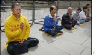 法轮功学员在中国驻伦敦大使馆外静坐抗议报导说,星期一,一些法轮功学员在伦敦唐宁街抗议。前一天另有150名学员在中国驻伦敦大使馆前静坐请愿。法轮功遵循真善忍原则,净化身体和心灵,提高道德精神水平。
