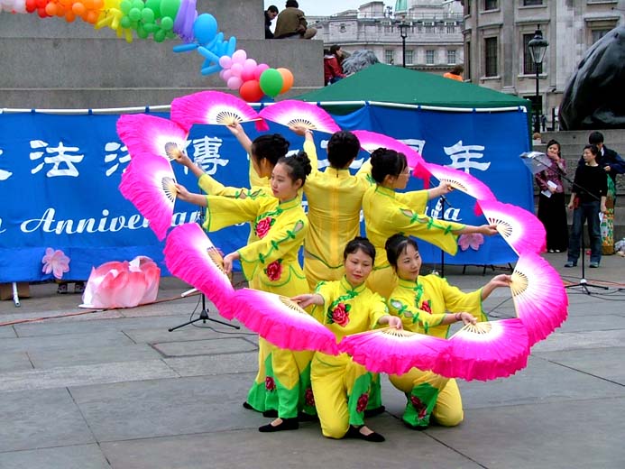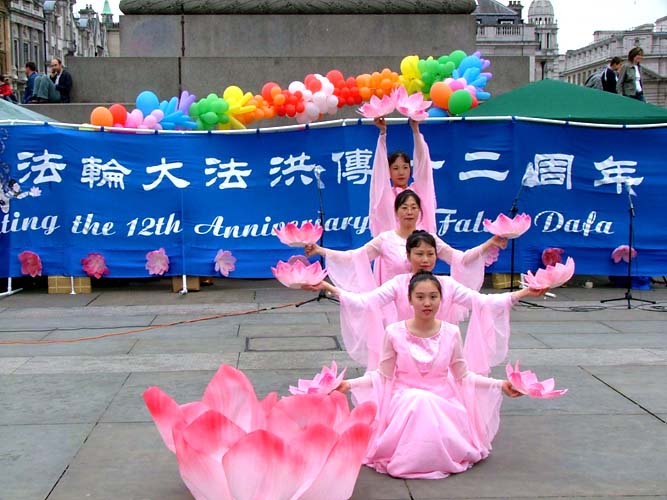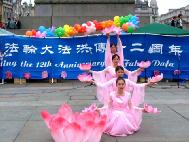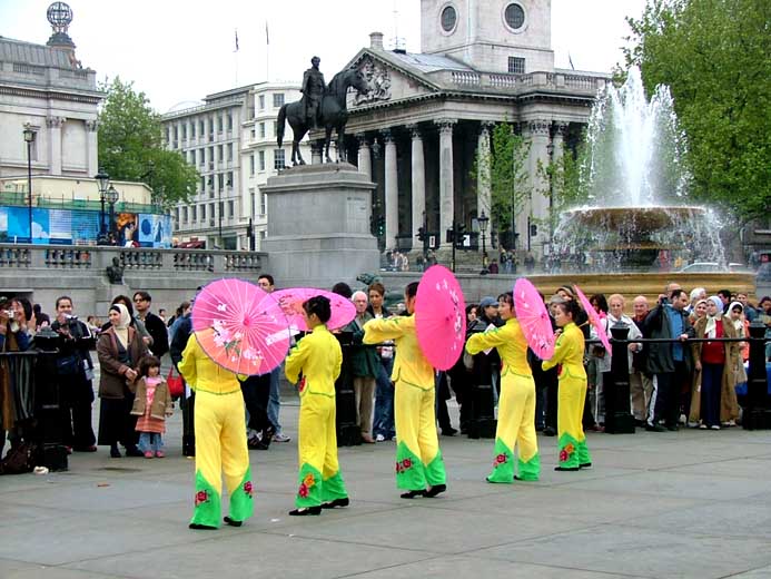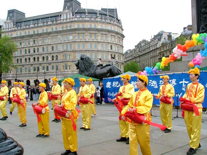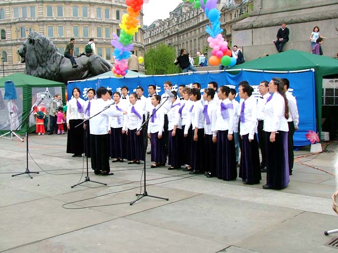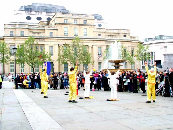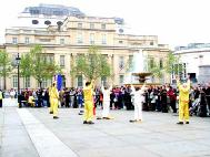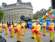 值得一提的是伦敦警察,在活动前,他们主动找到法轮功学员,并告诉学员,他们是来协助的,他们知道法轮功非常好……,并祝愿法轮功学员们的活动圆满成功。在活动中,不断有执勤的警察来索取真象资料。演出结束后,他们再一次找到学员,并祝贺演出成功。