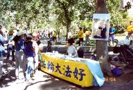 ![]() 功法演示 | ![]() 善良的民众在营救李祥春医生的请愿信上签名 | ![]() 美丽的展板向人们展示法轮大法的美好 |