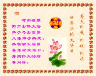 河南省荥阳市全体大法弟子与全世界大法弟子共庆,共颂第五届世界法轮大法日。并向伟大的师尊问好。