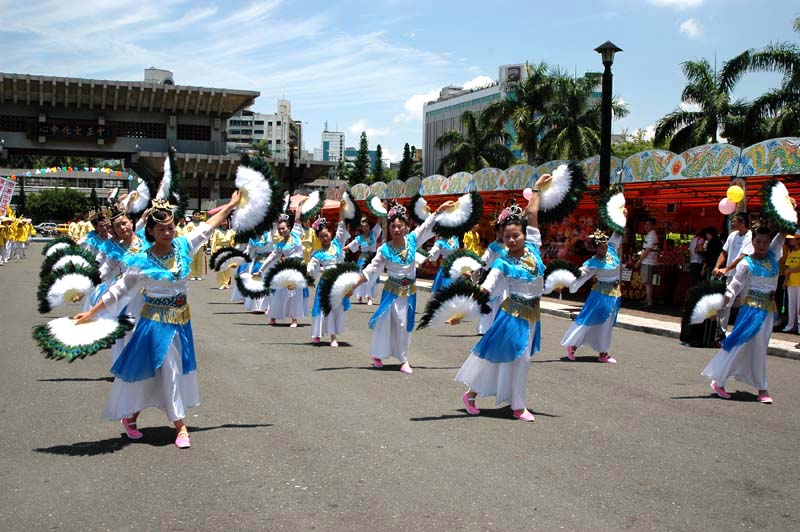 ![]() 扇子舞 | ![]() 热情民众挥手致意 | ![]() 高雄市副市长林永坚受邀致词 |