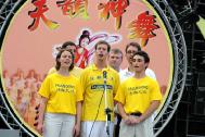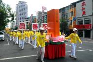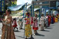 炙热的太阳当头,但法轮功学员却丝毫不以为意,不仅秩序井然,一路上还热情的向市民挥手,高呼「母亲节快乐!法轮大法好!」,市民也回以热烈的掌声,现场一片祥和、温馨。