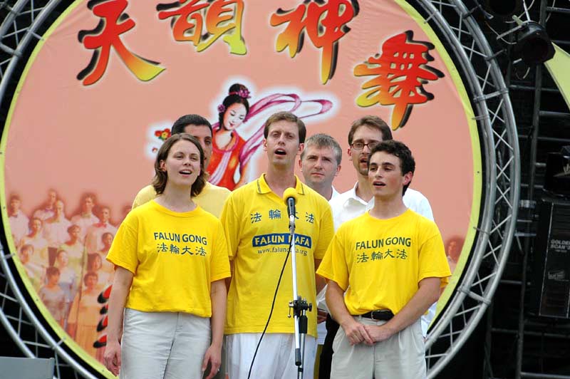 有市民说:「可以在这么高温炎热的太阳底下走这么久,不会中暑,这功法一定很棒。」并开始询问那里可以学炼法轮功。