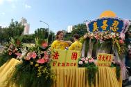 ![]() 《转法轮》书籍 | ![]() 法轮大法弘扬世界各地 | ![]() 花车上的法轮功功法演示 |