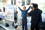 ![]() 在领馆前呼吁中国政府停止迫害 | ![]() 明报记者采访被吊打学员 | ![]() RFA电台采访 |