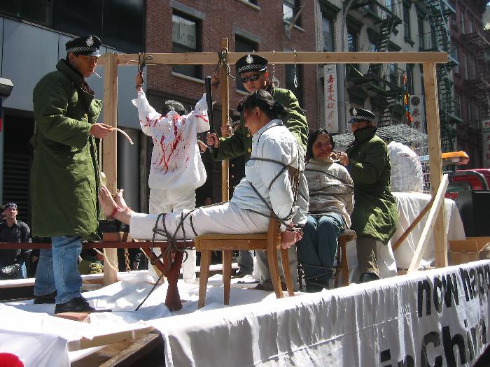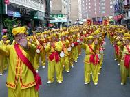 2004年4月10日下午,来自世界各地的约三千名法轮功学员在曼哈顿的中国城举行了以“正法之路”为主题的盛大游行,演示法轮功自1992年传出以来历经沧桑、悲壮辉煌的历程,引起了观众的极大反响,有的人被真人造型展示法轮功学员在中国大陆遭受的酷刑迫害所震动,有的人被美丽的舞蹈鼓乐等展现法轮功学员在被迫害中依然给世界带来乐观、希望与光明而感动得流泪。