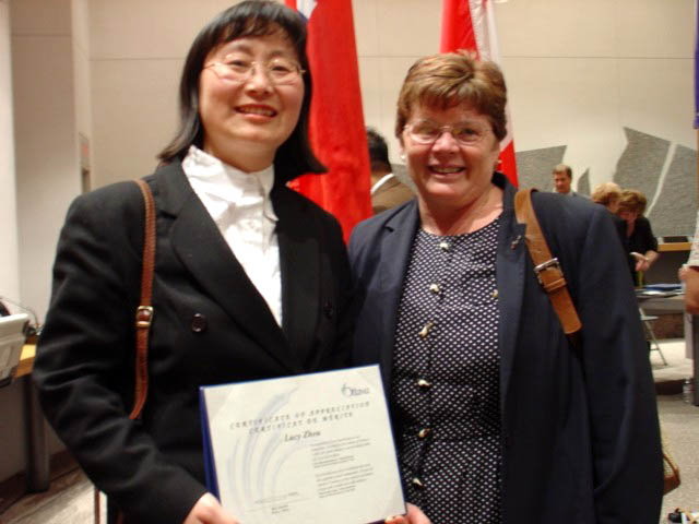 加拿大法轮功学员张照進、李铁筠2002年6月因长期无私营救受迫害的法轮功学员和为社区进步安宁作出贡献而受到多伦多市政府嘉奖。法轮功学员周露西在营救中国大陆无辜被迫害的法轮功学员中所表现的忘我精神,以及持之以恒地把法轮功普世价值和功法介绍给社区、大中学校、媒体等获得“人道主义精神”类别公民表彰奖。陈欣蒂2004年5月因促进健康、维护人权及建立和平社区等方面所做出的杰出贡献而获渥太华社区褒奖。