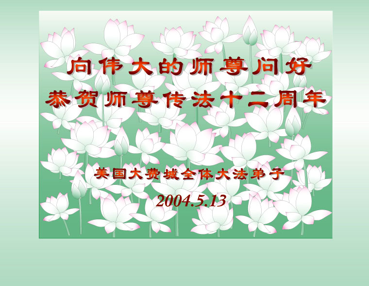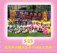 【明慧网2004年5月13日】(明慧记者古安如综合报道)五月十三日,世界迎来了第五个“世界法轮大法日”,这个在五年前由世界各国法轮功学员倡导订立的世界性节日,给人类带来了赞颂法轮大法、赞颂“真、善、忍”的美好机缘。