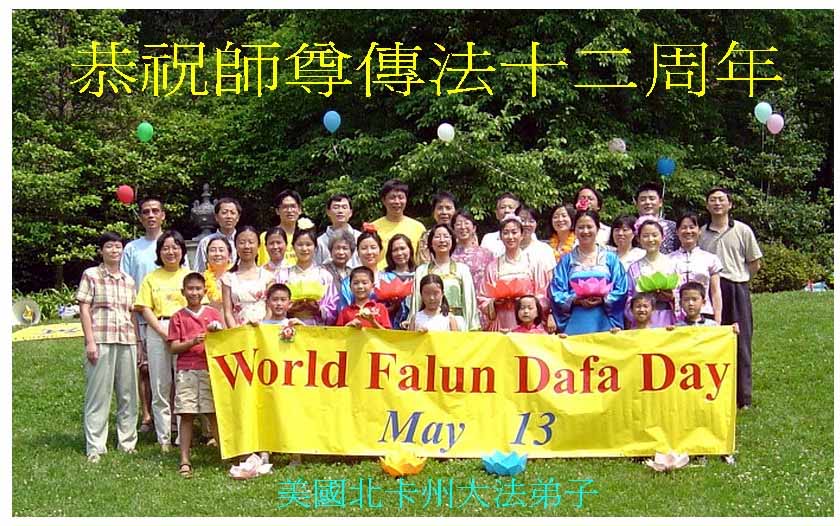 5月8日,北卡罗莱纳州的大法弟子齐聚杜克大学花园,欢庆世界法轮大法日。学员准备了诗朗诵、唱歌、乐曲表演等节目,同时还准备了糖果、点心;制作了彩色莲花,气球,把活动地点装扮得五彩缤纷、绚丽明亮。过往的游人情不自禁的拿起相机拍照;有游人表示功法太优美了,询问学功地点和时间。