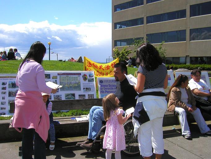 这两个地点也是本地区学员每周末都坚持向民众讲法轮功真象的地方。许多路人已经了解了真象,当路过展板时主动向身边的家人和朋友介绍什么是法轮功和法轮功无辜在中国被迫害的情况。很多人还签名要求当地州长为法轮功伸张正义。