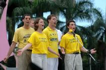 来自美国的西方学员孟博恩,瑞典-修洪心,加拿大-曹伟德,美国-梅曼郁,以色列-林理善,用中文唱出《为你而来》这首歌曲。他们热爱中国文化,来到高雄用中文自我介绍,用歌声表达他们由衷的心声-法轮功好,在全世界可以自由学炼,这么美好的功法应该让更多人知道。