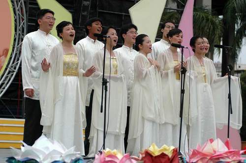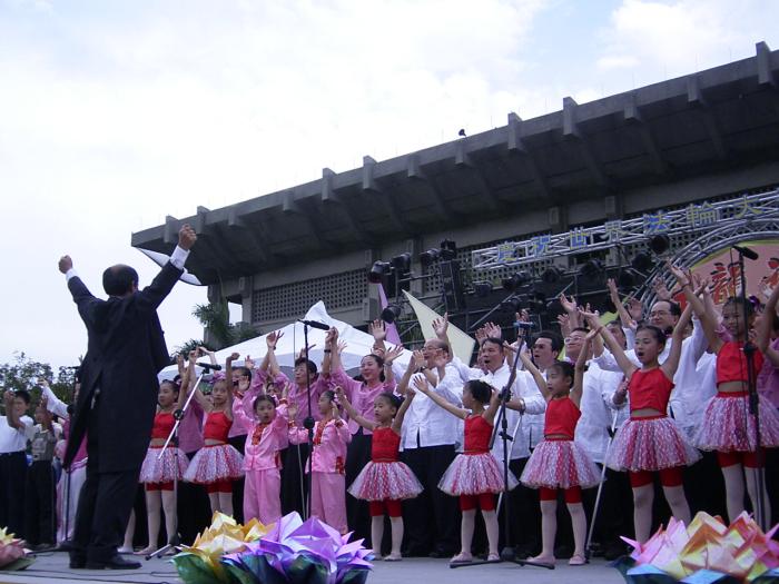 节目的尾声,由全场所有表演者合唱一曲《法轮大法好》,同时邀请台下的来宾共同合唱,这首简单易学的曲子,来宾很快的就朗朗上口,在这温馨季节里,普天下自由国家的母亲都能和家人团圆共渡这个佳节,在大陆很多法轮功学员的母亲却痛心失去她们爱子,只因为他们的孩子想做一个好人中的好人,却被江氏迫害,不得不流离失所,无法享受人间天伦之乐,让我们用同理之心共同关注此事件。
