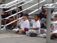 整个活动场面喜庆、祥和、震撼,也吸引了不少过往行人。人们纷纷驻足观看,并充满感激的接过法轮功学员赠送的法轮功真象传单,有的人还询问炼功的地点,有的表示对法轮功学员的同情和支持。