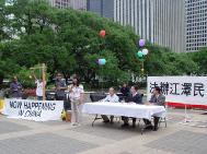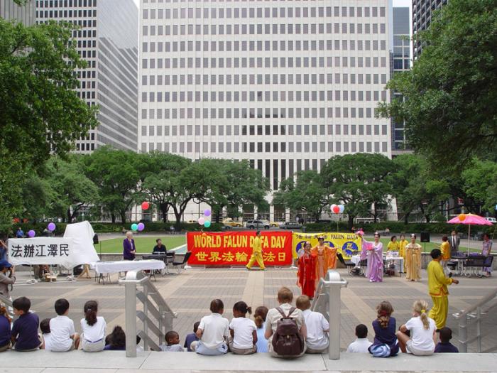 今天中午的庆祝活动在“法轮大法好”的歌声中圆满结束。休斯顿法轮功学员还将于今天晚上在中国城与社区华人举行庆祝联欢活动,并将于5月15日(星期六)在中国城举行室外表演活动。