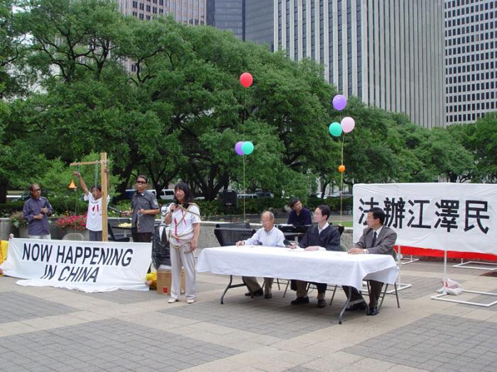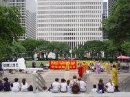 休斯顿法轮功学员于5月13日中午在休斯顿市政府前广场举行形式多样的活动,