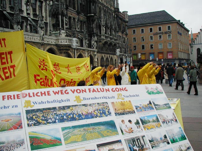 【明慧网2004年5月14日】5月13日在德国慕尼黑的马琳广场(Marienplatz),来自德国南部部分地区和奥地利的大法弟子举行了庆祝5-13世界法轮大法日的活动。