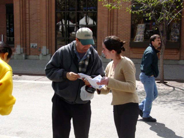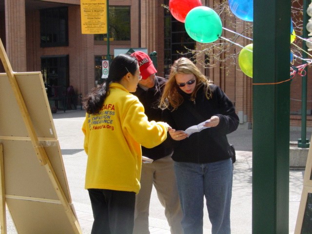 在对行人讲法轮功真象过程中,越来越多的人们不再只是知道这场迫害,而更多的是明白了这场迫害给全人类带来的危害和反迫害的意义,并表达了对法轮功的支持和帮助。一位来自美国中部的游客认为,法轮功学员揭露迫害是一场正义和邪恶的较量;一位曾经接过真象资料的在校学生,希望能得到更多的明信片,在她的同学中征签。有的行人还给学员们出主意,怎样使讲真象深入到社区和各个团体。