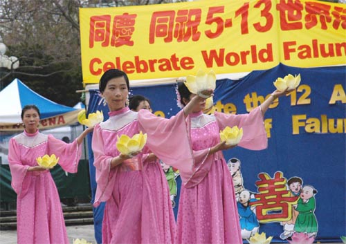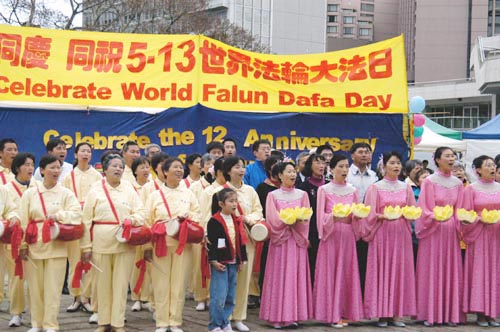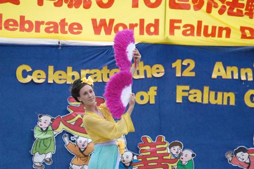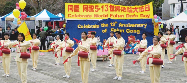 【明慧网2004年5月16日】5月15日,来自新西兰北岛奥克兰、汉密尔顿、罗托鲁阿、北帕和惠灵顿的法轮功学员同聚一堂,在奥克兰市中心的Aotea广场举行庆祝法轮大法日及法轮大法洪传十二周年活动。演出节目精彩纷呈,吸引了大批民众观看。