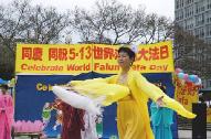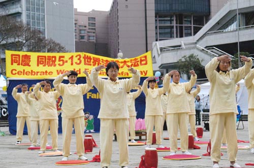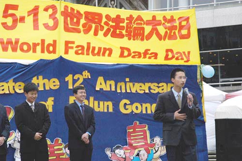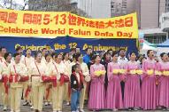 香港学员庆祝法轮大法日 繁忙街头精彩表演(图)