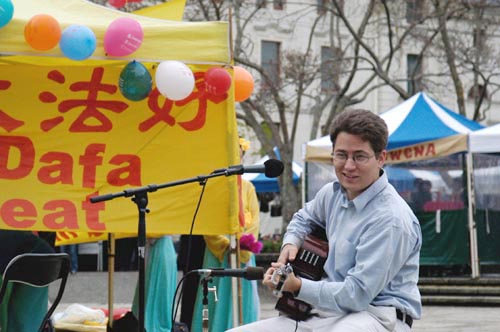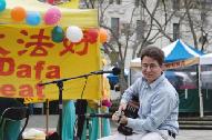 西人学员演唱自己创作的《法轮大法日》歌曲