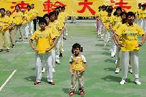 ![]() 学员表演第五套功法 整齐庄严 | ![]() 小弟子认真表演第二套功法 | ![]() 学员炼功神情宁静祥和 |