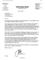 参议员在信中还说,随后,我给中国驻华盛顿大使馆打去电话,强调了我的三点关注:(1) 关于你表妹下落不明一事;(2) 法轮功学员在中国受迫害的问题;(3) 中国总体的人权状况。同时我还要求使馆通知我有关你表妹案情的任何新情况。