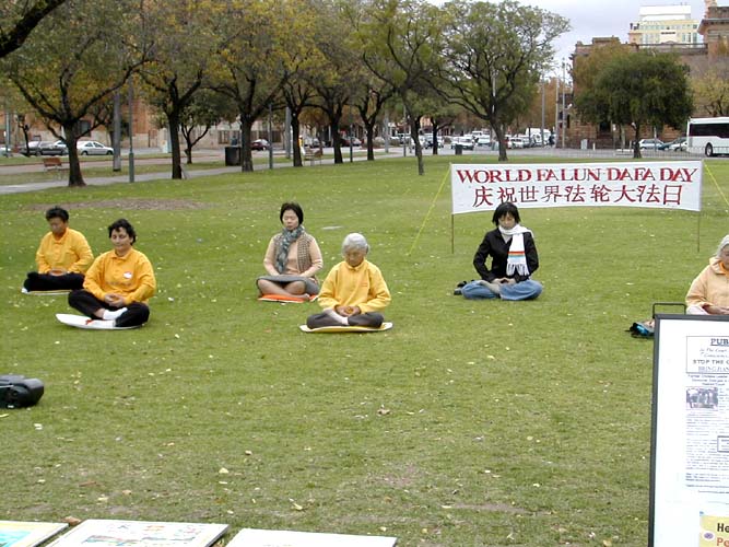 【明慧网2004年5月17日】5月13日,南澳大法弟子在宝塔酒家举行法轮大法咨询日,酒家内设有大电视播放大法真相,许多客人观看了真相。设有咨询台放置许多大法资料,书签,卡片,纸莲花送给前来咨询的人们。5月15日,大法弟子继续庆祝世界法轮大法日活动,在阿德雷得市中心维多利亚广场放置了大法展板,演示功法,向过往行人散发大法资料及征签,许多人们听到了真相。