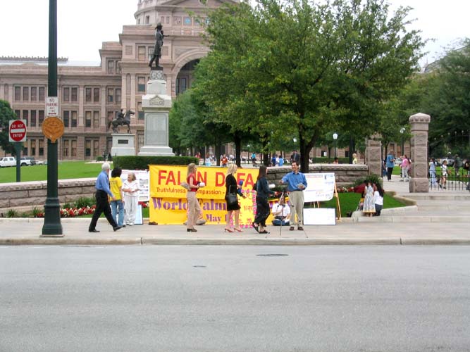 大法弟子展出了“正法之路”及“和平的花瓣”系列图片,向州政府官员、工作人员、及外来的游客展示大法洪传过程及迫害真象。此图片展将持续展示一周。