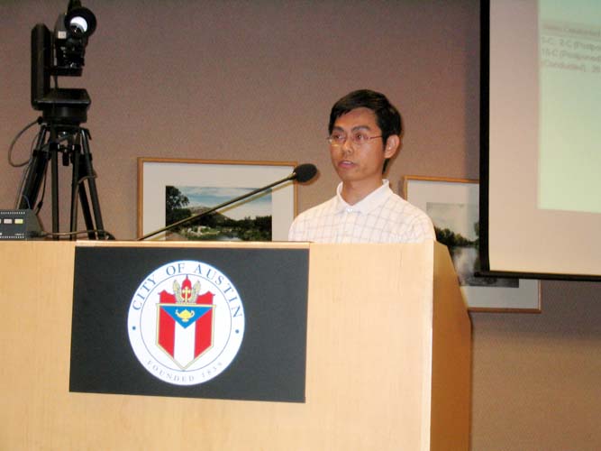 在世界法轮大法日当天,大法弟子在市议会向市长、市议员及市民介绍法轮大法洪传世界12年,使上亿人道德提升、身心受益,却遭到江氏集团持续近5年的残酷迫害。同时赠送每位市府官员一朵纸莲花以庆祝世界法轮大法日并感谢他们长期以来对法轮大法的支持。