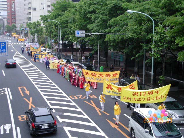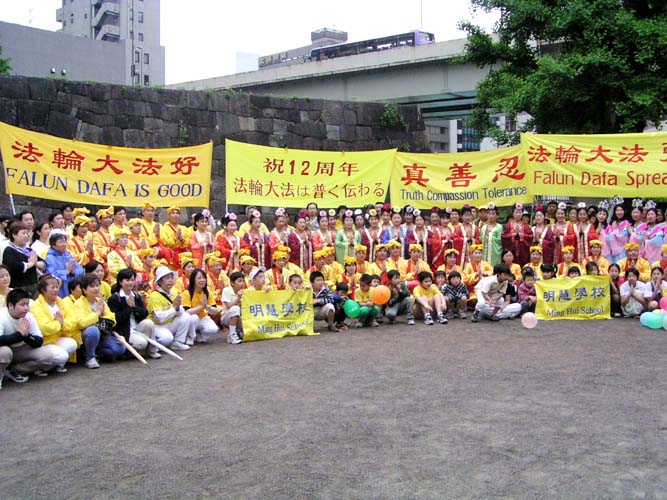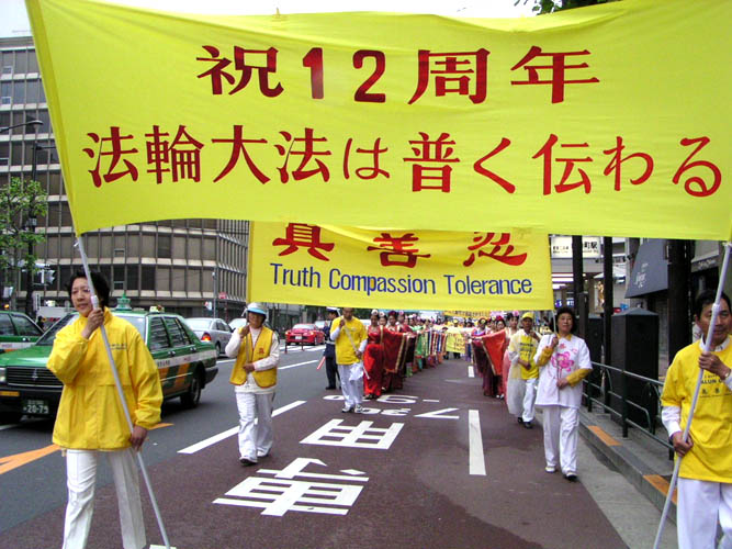 日本学员在东京举行游行庆祝法轮大法洪传12周年(图)