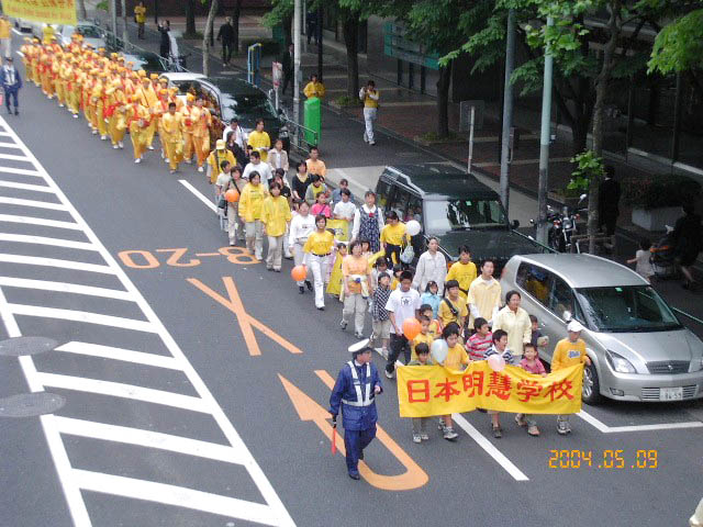 【明慧网2004年5月17日】5月9日,来自日本全国各地的大法弟子在东京举行游行,庆祝法轮大法洪传12周年和日本法轮大法周。