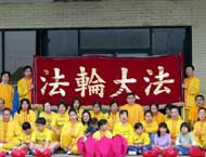 5月15日星期六,学员又来到阿灵顿市亚州城的香港超市前欢庆世界法轮大法日。