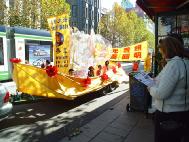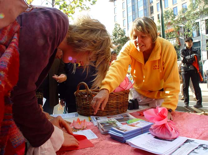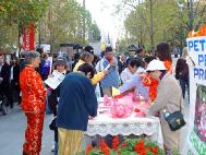 一位负责发资料的学员介绍说,仅他一人,今天就发了上千份资料。许多行人主动到他手里来“抢”资料,急于知道法轮功是什么?为什么会在全世界受欢迎,却在中国受到不可思议的迫害?