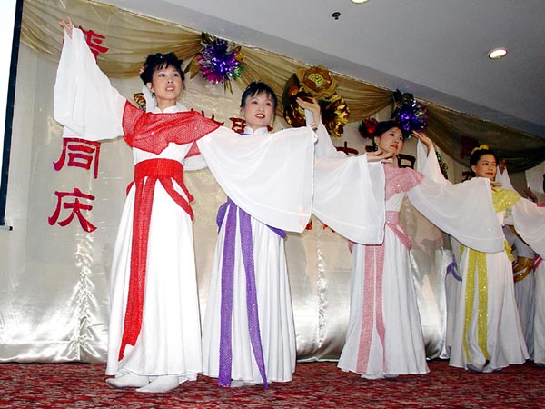 这是学员继8日,12日分别在当地部分社区福利团体举办的文艺演出后的第三场。当晚大约有400人出席并观赏了历时一个半小时的晚会,学员演员及法轮功之友演员共表演了十几个节目,其中包括:歌舞、独唱、合唱、舞蹈、二胡和古筝演奏等。