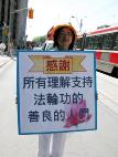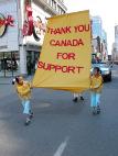 法轮功学员的不懈努力,赢得了来自加拿大和世界很多国家的政府和善良民众的同情和支持,越来越多的政府官员和善良的人站出来,呼吁停止迫害,帮助制止这场镇压,其中加拿大各级政府多次通过了支持法轮功,谴责迫害的决议案,多次写信呼吁停止迫害。加拿大20余万民众也通过明信片和请愿信等形式签名支持法轮功,要求加拿大政府帮助停止这场浩劫。为了表达鼓励和讲清真象,多伦多的法轮功学员特意赶制了几面横幅来说明并支持加拿大政府官员和善良民众的正念正行。